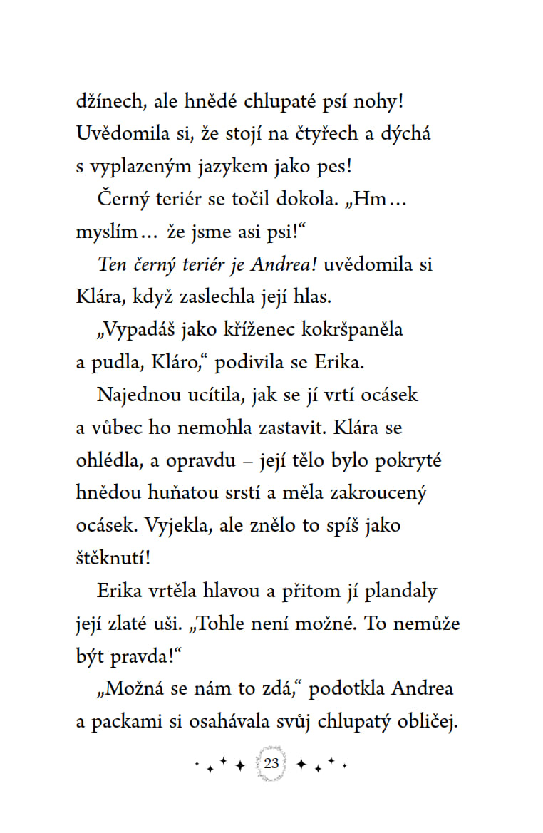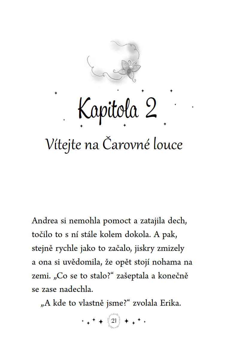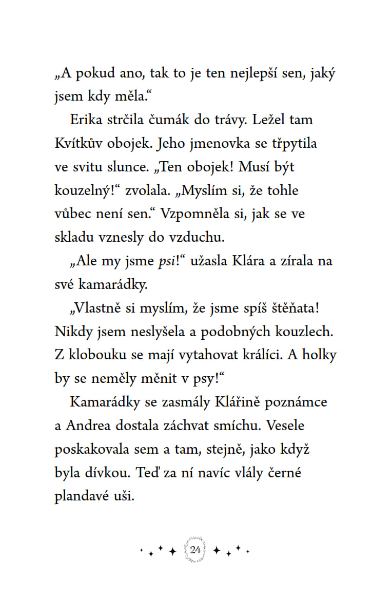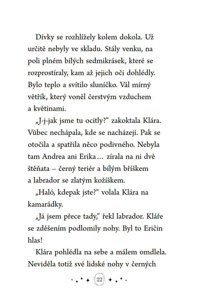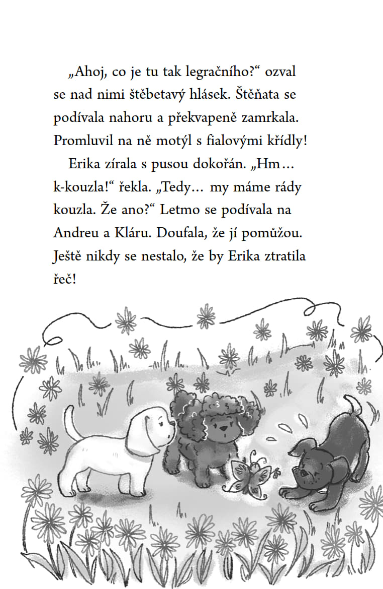 Kamarádky Erika, Klára a Andrea se shodou kouzelných okolností promění ve štěňátka a ocitnou se na úžasné Čarovné louce. Je to nádherné místo, kde rostou květiny všech barev a vůní – prvosenky, sedmikrásky, slunečnice, violky a také hyacinty.