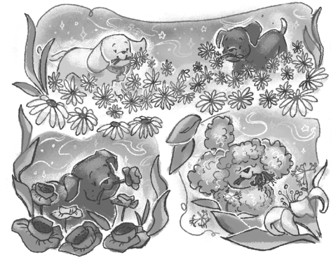 Skřítkům v Hyacintovém háji se však zničehonic začnou přes noc ztrácet jejich kytičky, které potřebují ke svému životu. Podaří se štěňátkům najít zloděje a zachránit skřítkům jejich domov?