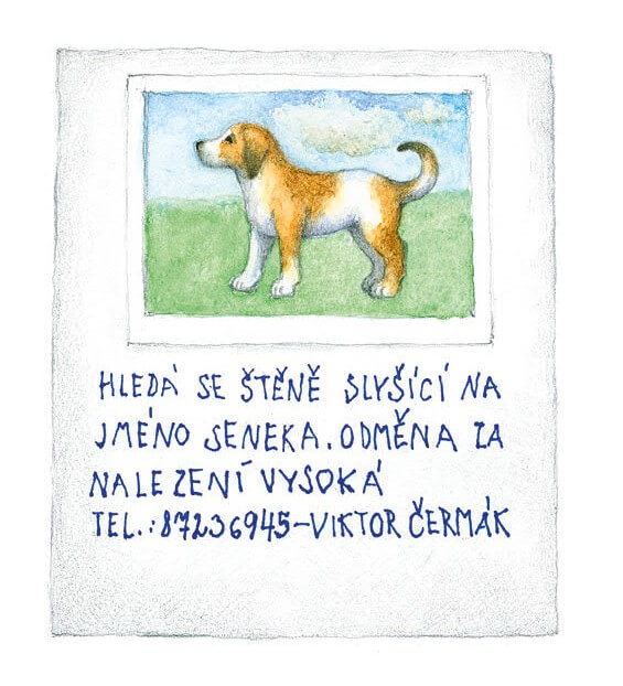 Jakmile se Viktor začal přibližovat ke dveřím svého bytu, okamžitě se ozvalo radostné štěkání, kňučení a nedočkavé škrábání. Když odemkl, Seneka na něj skočil a radostně se s ním vítal. Celé dopoledne mu bylo smutno, a tak si chtěl všechen ten nekonečný stesk okamžitě vynahradit. Viktor odhodil školní batoh, vrhl se na zem a nechal se zasypávat psími polibky. Štěňátko bylo blahem bez sebe. Rozdivočilo se a začalo ho štípat štěněčími zoubky ostrými jako jehličky. Když se mu zakouslo do trika a snažilo se ho z něj servat, Viktor zakročil: „A dost, Séňo, to stačí! Zničíš mi tričko.“ Položil pejska na zem, vyskočil a šel se do kuchyně napít. Tam mu ale zamrzl úsměv.