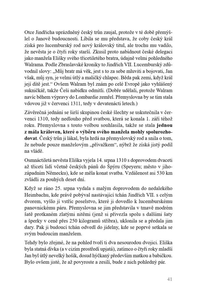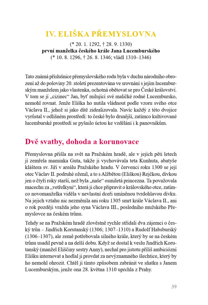 Dozvíte se například nejen to, odkdy jsme měli místo kněžen královny, proč se čeští králové ženili s cizinkami a zda musely všechny ovládat češtinu, ale i to, jak probíhaly jejich korunovace. Ze soukromí českých panovnic vás bude možná zajímat, proč Jan Lucemburský po čase znemožnil Elišce Přemyslovně zasahovat do jeho vlády, z jakého důvodu se Žofie Bavorská stala vězněm svého švagra Zikmunda a jak si vedla jediná vládnoucí žena na českém trůně, Marie Terezie. Zřejmě vás překvapí, jak se po roce 1918 vyrovnávala poslední česká královna Zita se ztrátou koruny.