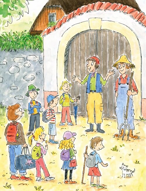 „Dobrý den, děti! Vítám vás i paní učitelku na naší farmě,“ přivítala je.