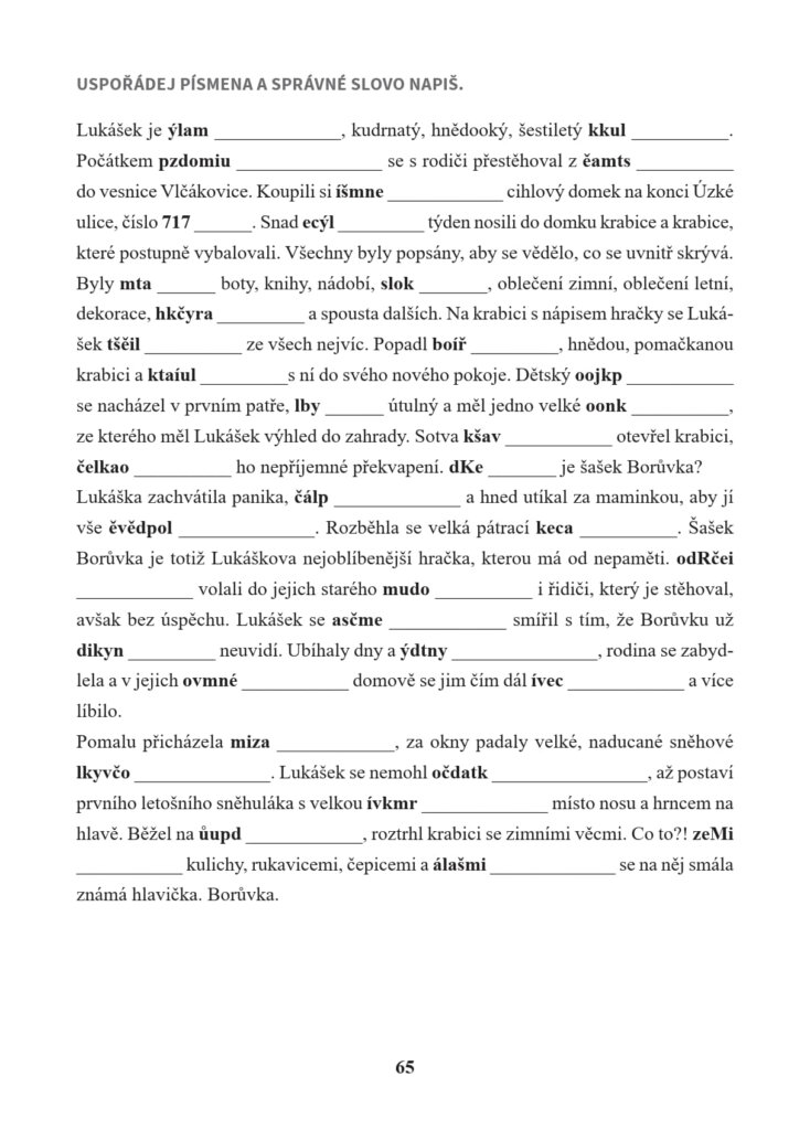 Čekají na vás čtyři dobrodružné příběhy, na které navazují zábavné úkoly a otázky. Procvičíte si doplňování písmen, slabik či slov, zamyslíte se nad pomíchanými písmeny a zapátráte po slovech, která do textu nepatří. Chybět nebudou ani křížovky, obrázky, které čekají na domalování a vybarvení, tajenky či popletené věty.