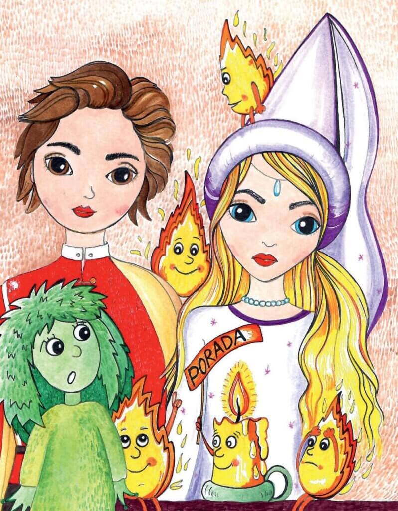 „On se snad zbláznil!“ vykřikla Herula, která ho sledovala jako tichý šedý stín. „Výtah na NAŠEM zámku? Kavárnička? Galerie obrazů?! To je ale neslýchaná drzost!“ chytila se za hlavu. „Františkuuu!“ volala a procházela zdmi, až se dostala do sklepa. Svého muže našla v čarodějné dílně. Zrovna se skláněl ke skleněné baňaté lahvi a vyráběl jakýsi zelený lektvar. „To jsem si mohla myslet!“ okřikla ho. „Pán si spokojeně bádá a nám nový kastelán začíná na zámku řádit jako utržený ze řetězu.“