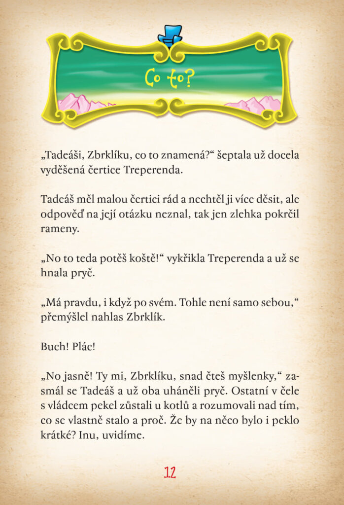 V pekle obrat času způsobí pořádný poprask. A nezbývá nic jiného než vyslat čerta Zbrklíka na dobrodružnou záchrannou výpravu do Země Věků. A k tomu bude zapotřebí spojit síly se starými přáteli. Obzvlášť když se budou muset postavit samotnému Kazičasovi, škodolibému a zlomyslnému čaroději.