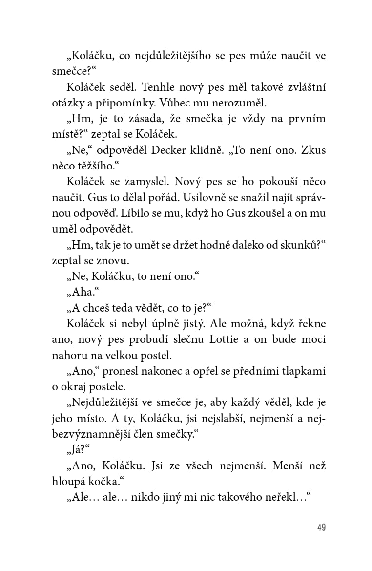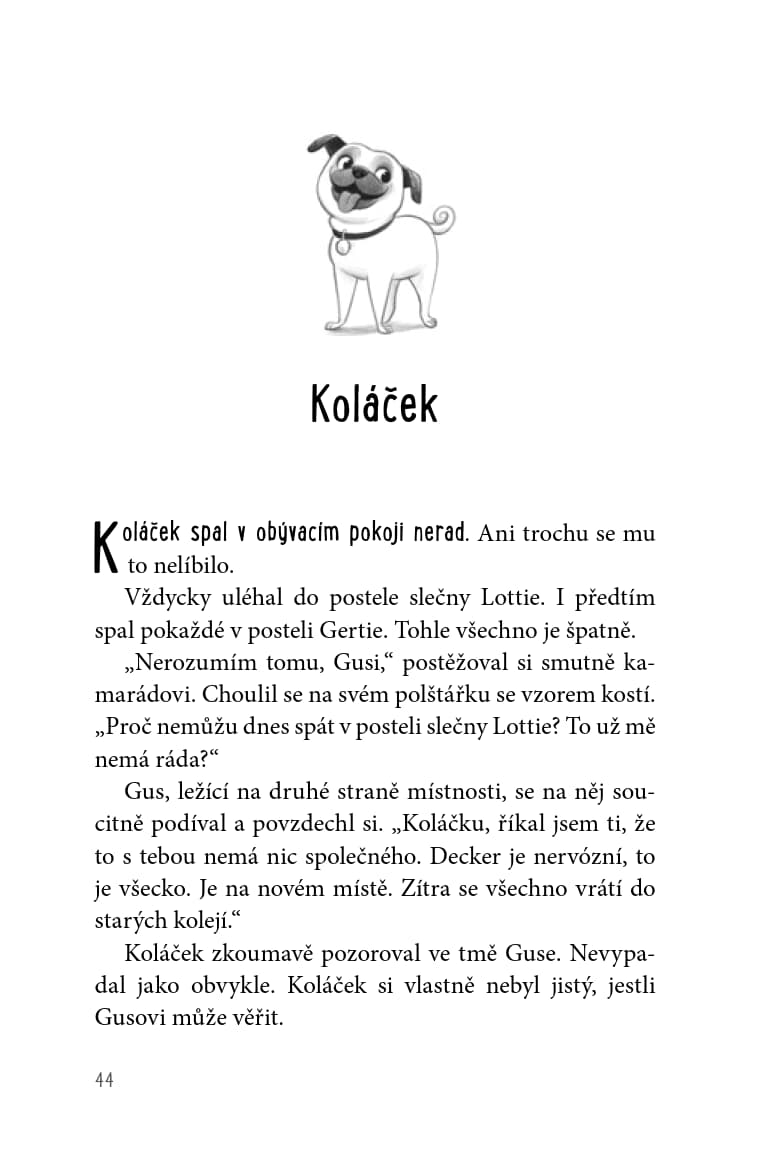 Slečna Lottie se ujímá psů, kteří už nemají svůj domov, a dává jim tak druhou šanci – znovu u ní domov najít. Teriér Gus je vůdcem smečky, udržuje klid mezi trochu vznětlivou Roo, ochranářským buldokem Tankem a malým mopslíkem Koláčkem. Rodinnou psí idylu ale naruší nový člen smečky Decker, který si chce srdce slečny Lottie ukrást jen pro sebe. Nic není jako dřív! Navíc zlý Decker zaviní i útěk Koláčka. A tak je na Gusovi, aby se spolu se smečkou vydal na cestu plnou překážek i nebezpečí a našel malého kamaráda.